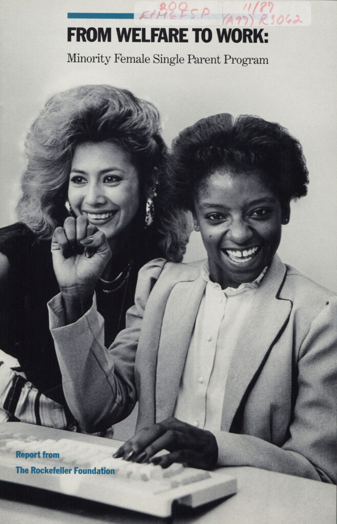 “From Welfare to Work,” 1987“From Welfare to Work: Minority Female Single Parent Program,” 1987, Rockefeller Foundation Collection, RG 1.23, Series 200, Box R3062, Folder “Employment Program for Minority Group Female Single Parents, 1992-1994,” Rockefeller Archive Center.