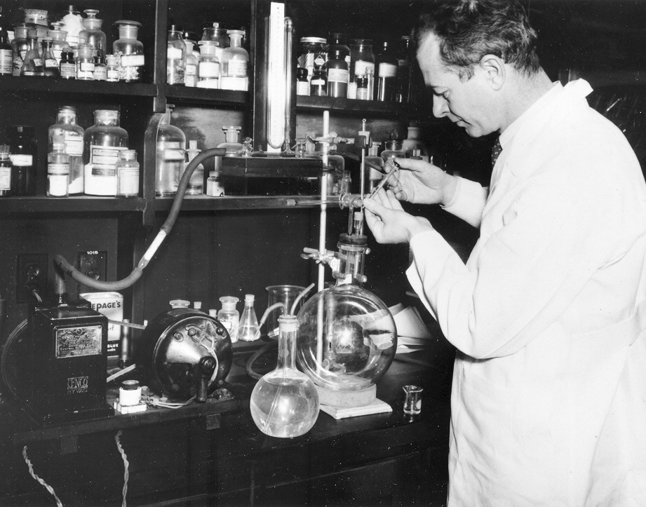 Progress shot forward at a lightning pace as the Foundation’s’s interests and funding helped shape research agendas. Major efforts supported by the Foundation included Linus Pauling’s work on chemical bonds, George Beadle and Edward Tatum’s work on how genes govern metabolic processes, Alfred Kuhn’s work in evolutionary developmental biology, Boris Ephrussi’s work on the regulation of embryological processes, and Otto Warburg’s study of the fermentation of sugars in the development of cancer cells. The Natural Science division’s funds also supported research on photosynthesis, vitamins, and radiation therapy for cancer.