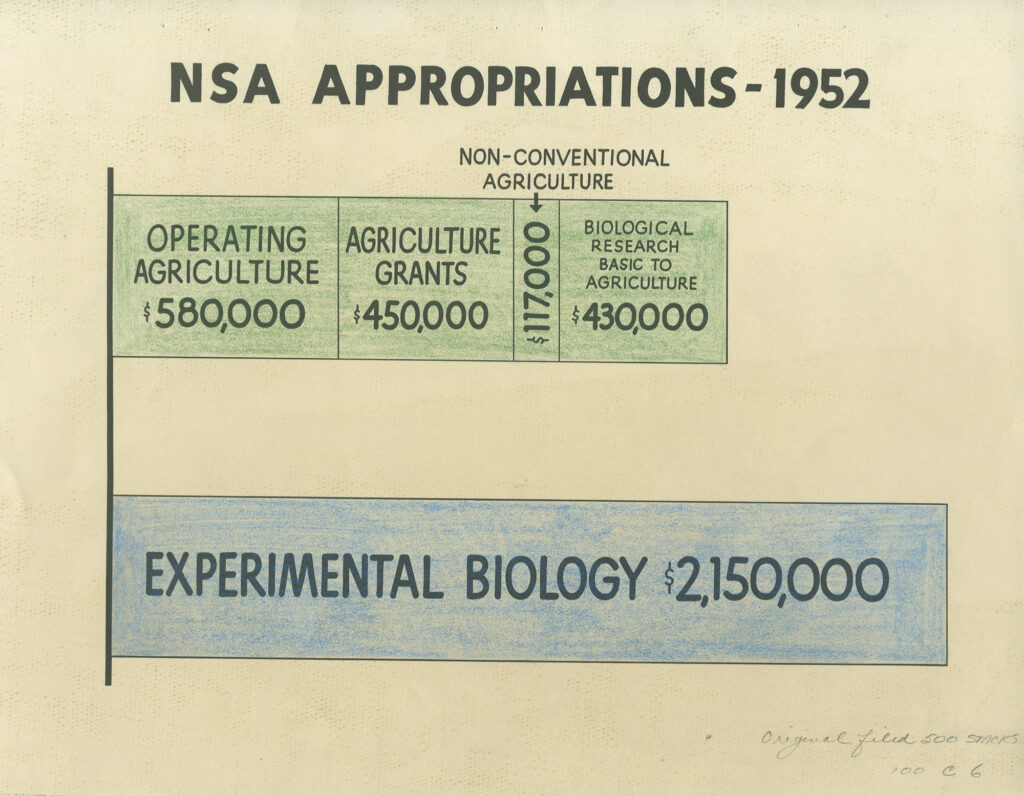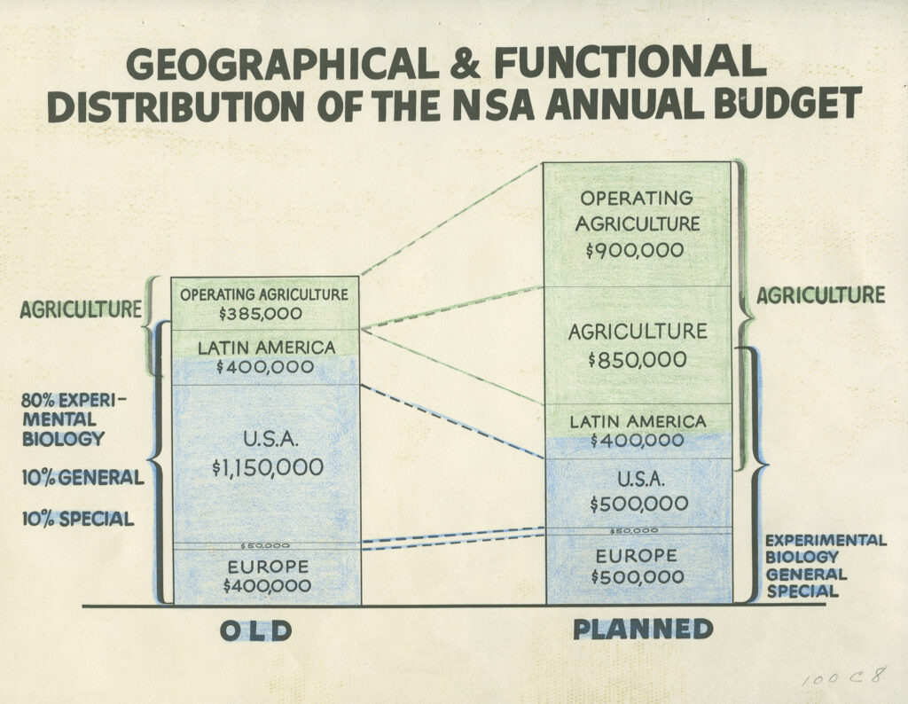 This 1953 chart shows the Rockefeller Foundation’s grant distribution for its Natural Sciences and Agriculture division.