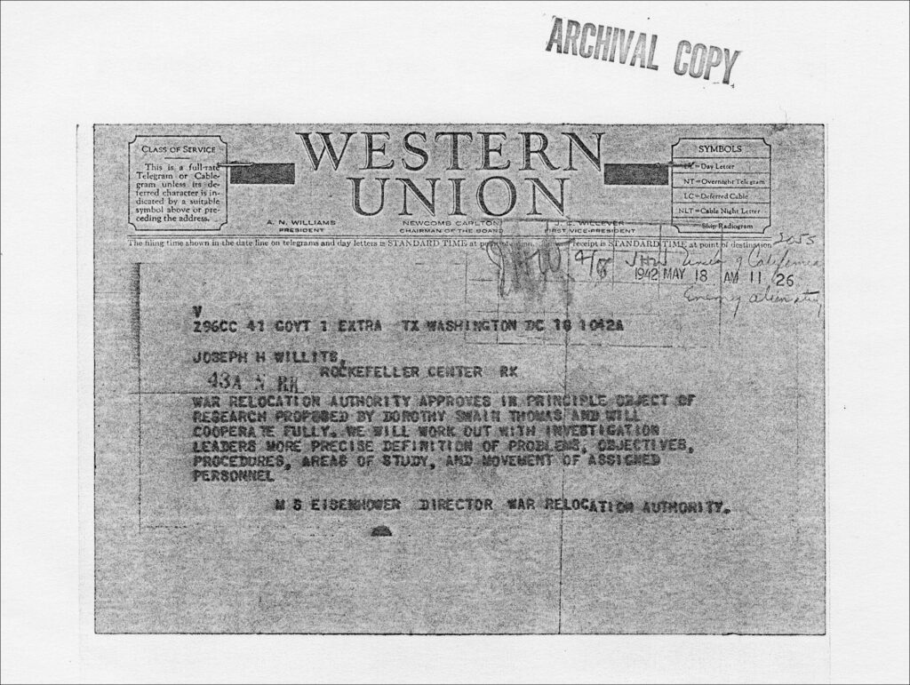 On May 18, 1942, Thomas secured the cooperation of WRA Director Milton Eisenhower, and the Japanese American Evacuation and Resettlement Study (JERS) was underway.