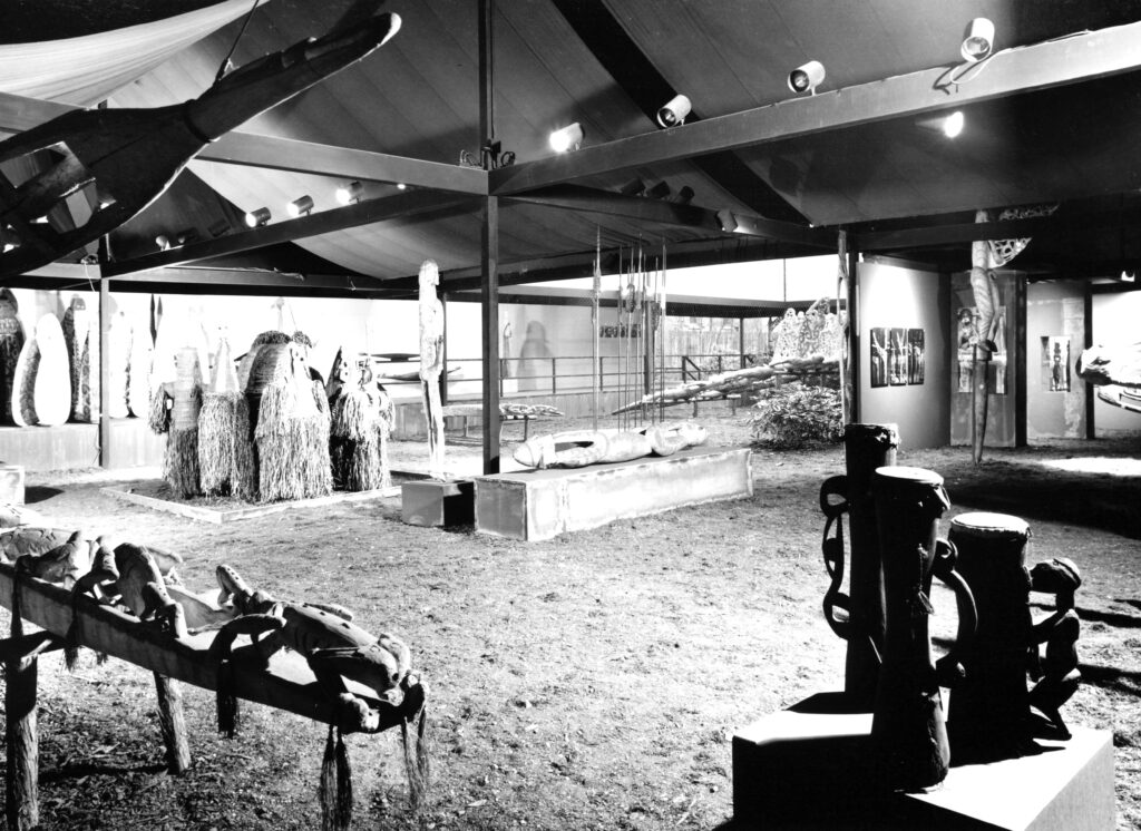 D’Harnoncourt, Newton and Goldwater set to work planning the exhibition, with the help of MoMA’s Director of the Department of Architecture and Design, Arthur Drexler. Drexler designed an outdoor pavilion to house as many of the items as possible, which included 400 works of art as well as Michael’s evocative photography. D’Harnoncourt designed the exhibit to resemble the inside of an Asmat home, complete with dirt floors.