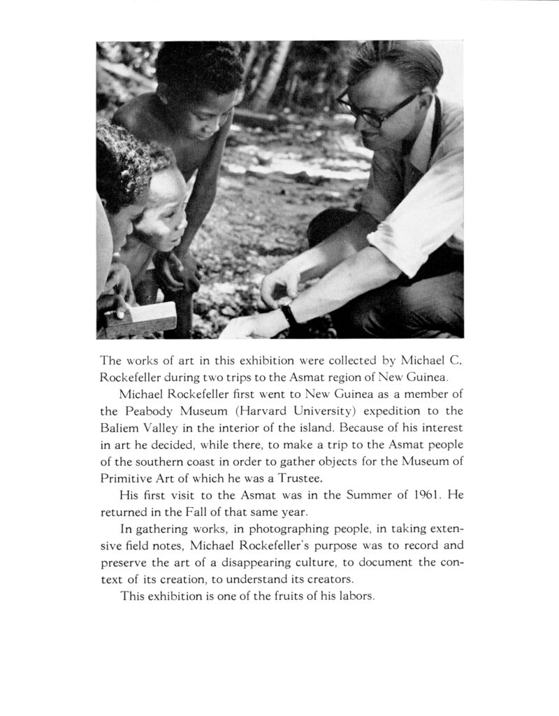 Sam Putnam, a Peabody colleague and close friend to Michael Rockefeller in a letter to Nelson Rockefeller, March 7, 1962. Museums – Museum of Primitive Art, 15 West 54th Street – Asmat Art Exhibitions, also re book, 1962-1971; Nelson A. Rockefeller personal papers, Projects, Series L; Rockefeller Archive Center