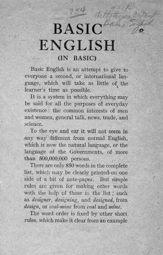 Foundation staff members eagerly embraced the work of I.A. Richards and C.K. Ogden of Cambridge University, whose research had led the two scholars to invent a system of teaching Basic English that relied on a vocabulary of merely 850 words and a simplified grammar.