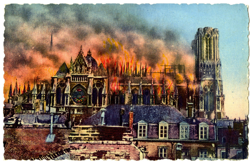 Significantly, then, the damages to the Cathedral sustained during World War I were a national trauma. The German bombing struck a devastating chord. Postcards depicting the 1914 bombing are testament to the symbolic significance of the Reims Cathedral to the French national spirit.