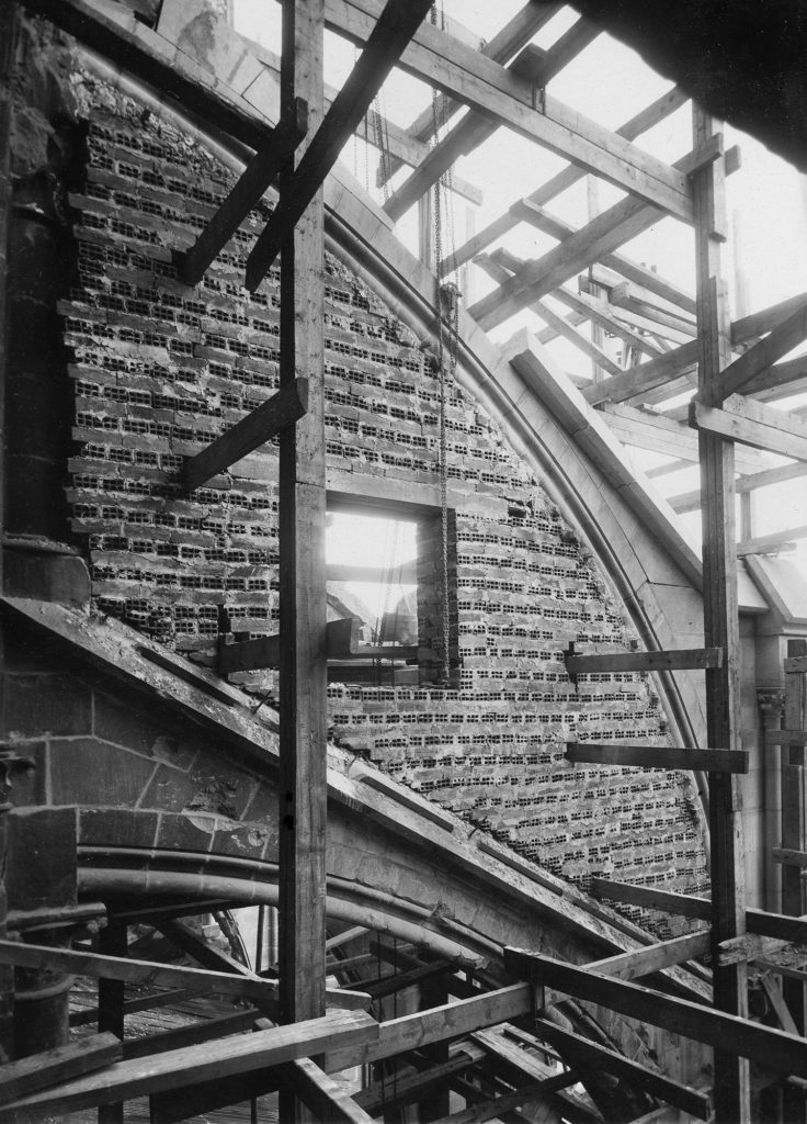 The Cathedral at Reims had sustained devastating damages during the First World War. On September 19, 1914, a German shell lit a ravaging fire that consumed the Cathedral, causing the roof to collapse and destroying the interior. While the palaces to be restored with Rockefeller’s gift were in disrepair due to “the devastating effects of time,” the Cathedral was a visible example of “the ravages of war” on humanity and culture.John D. Rockefeller, Jr. to Raymond Poincaré, May 3, 1924, French Restorations – Restorations in France – Gifts – Articles on Work, 1925-1933, Office of the Messrs. Rockefeller records, Cultural Interests, Series E, Rockefeller Archive Center.