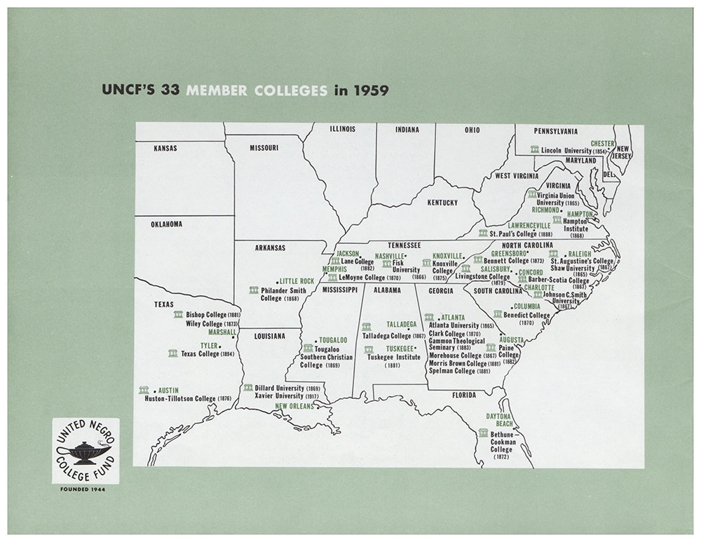 Rockefeller family philanthropy (distinct from the RF) had long supported HBCUs. John D. Rockefeller, Jr. and his son, John D. Rockefeller 3rd, had chaired the Fund’s advisory committees and contributed millions to UNCF fundraising campaigns since the 1940s, as had JDR 3rd’s brother Winthrop Rockefeller.“United Negro College Fund,” Rockefeller Family Public Relations Department papers, Series 13, Rockefeller Archive Center.