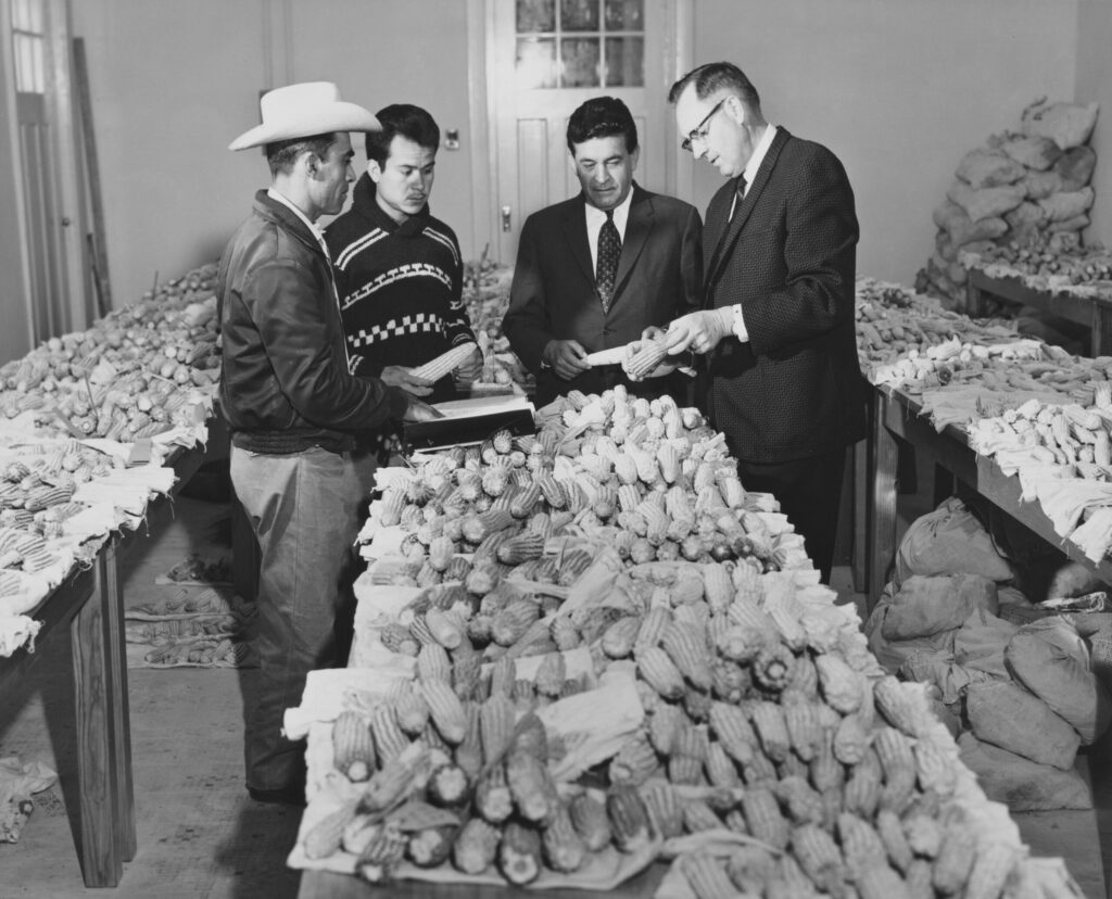 Although bigger breakthroughs would come in wheat, corn was MAP’s first task because of its centrality to the Mexican diet. Wellhausen collected over 800 Mexican varieties of corn, testing each for its behavior under different conditions including temperature and precipitation, soil composition, and altitude. It was impossible simply to import U.S. corn, as foreign varieties tended to fail in the complex Mexican climate. But Wellhausen made immediate yield improvements simply by distributing the best Mexican varieties to farmers in regions without access to them. He then planted the top varieties next to each other so that natural cross-pollination could occur, ultimately creating two alternating hybrid lots that could again be planted in intercrossing lines, eventually resulting in what agricultural scientists call a double-topcross synthetic. These synthetics outperformed even the top hand-selected varieties and were widely distributed to farmers.