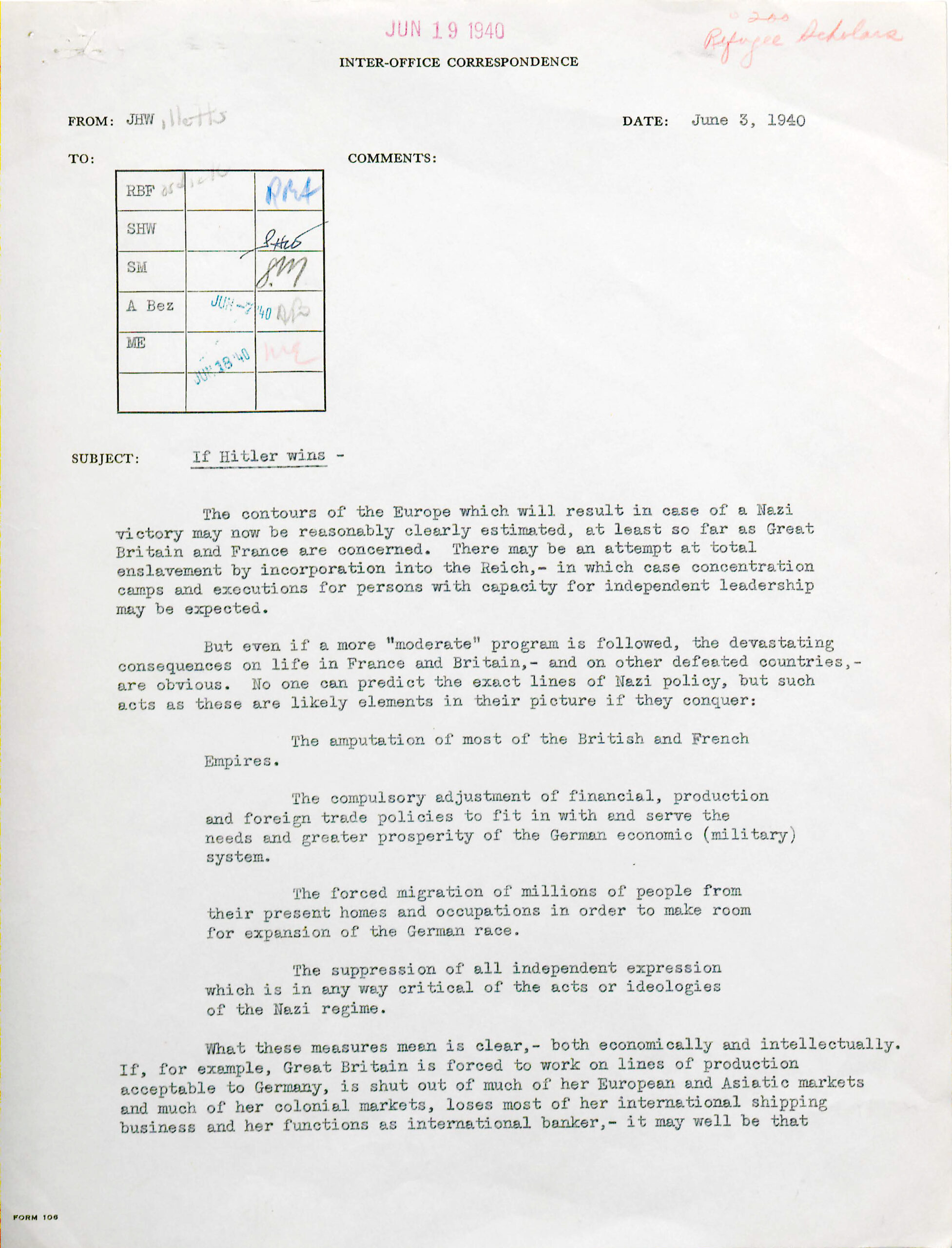 Joseph H. Willits, “If Hitler Wins,” June 3, 1940Joseph H. Willits to RF Officers, June 3, 1940, Rockefeller Archive Center (RAC), RG 1.1, Series 200, Box 46, Folder 530.
