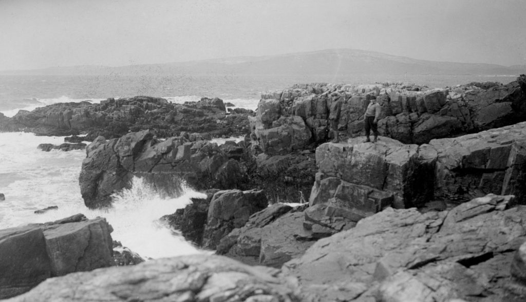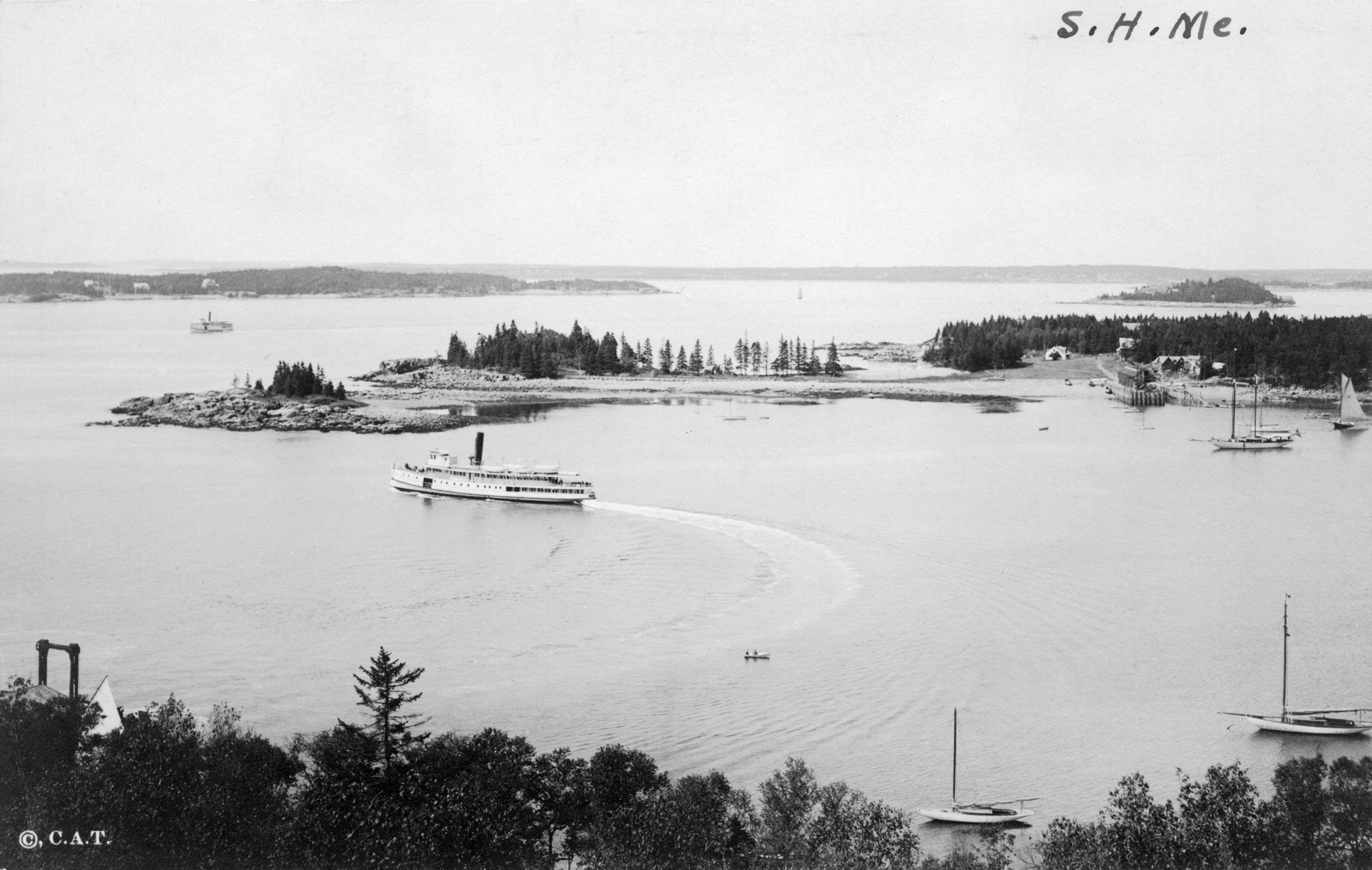 Cadillac Mountain looms as the tallest of the eighteen mountains on Mount Desert Island, Maine. In fact, it is the highest peak on the Atlantic coastline. European mariners were drawn to the bays and harbors of the island as early as the 1500s. Tourists began to flock to the island in the 1870s and by the turn of the twentieth century, some of the mountain peaks were occupied by small hotels.