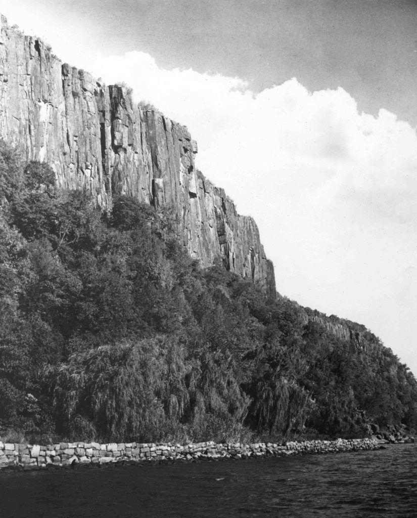 Near the Rockefeller family homes, just across the Hudson River on the outskirts of New York City, the Palisades cliffs have been celebrated by famous writers and depicted by painters. Stretching thirty miles along the west bank of the lower Hudson River, the Palisades had been quarried for decades to meet New York City’s demand for cobblestones and building blocks. As the demand for concrete grew in the late 19th century, dynamite blasting began to seriously deface the cliffs, and citizens of New York and New Jersey rallied to protect the shoreline.