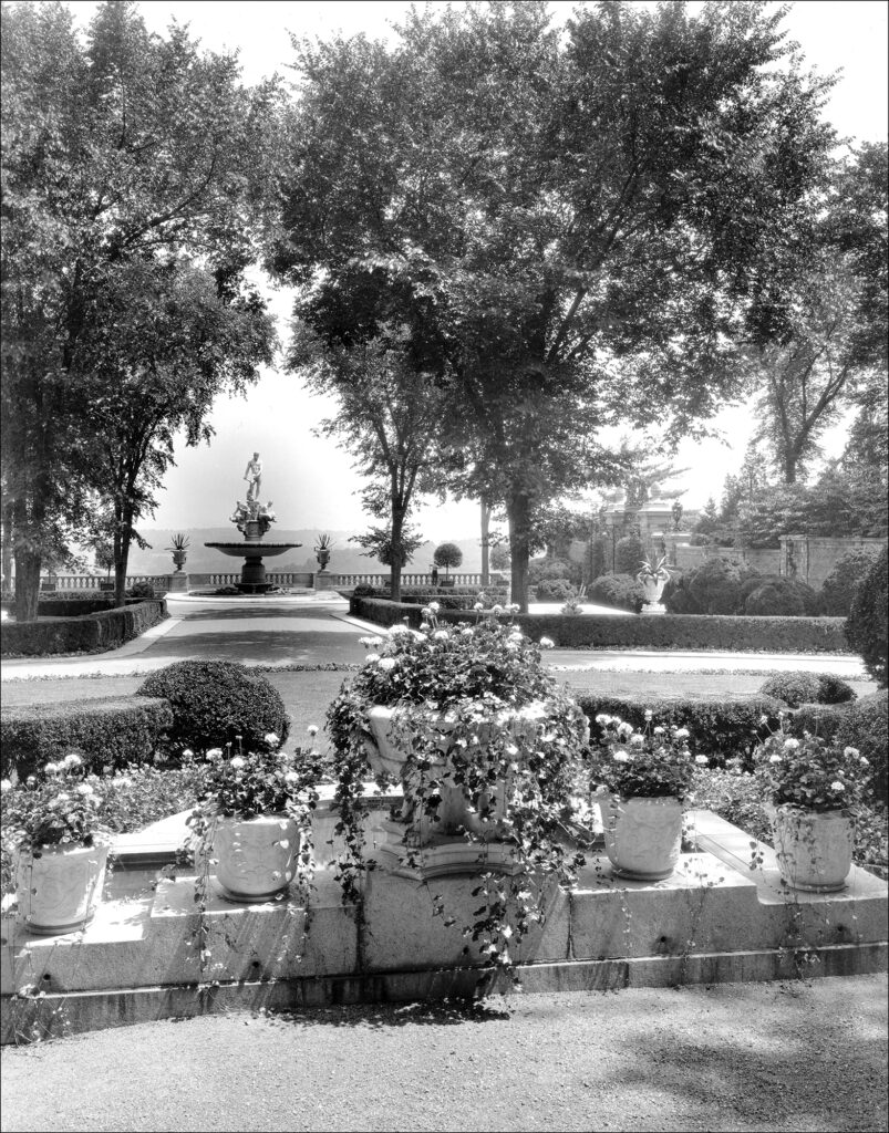 Facing west, Kykuit’s Forecourt with the Oceanus fountain in the distance