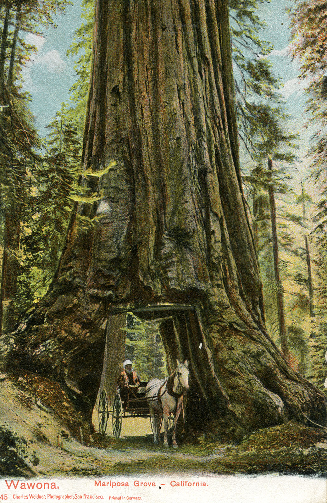 Yosemite’s 2,300-year-old Wawona tree was carved out in 1881. It fell in 1969.