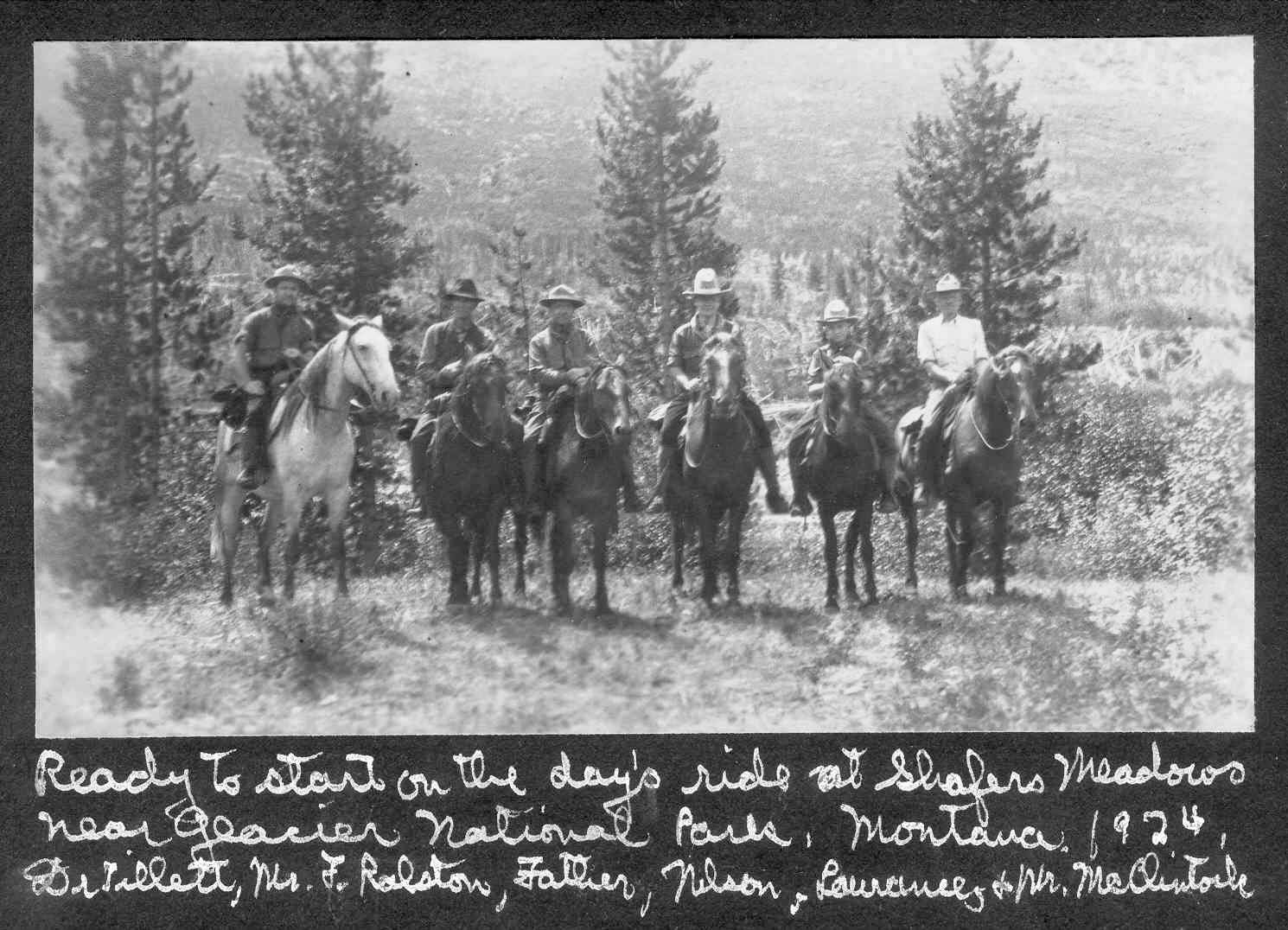 John D. Rockefeller, Jr. with sons and companions at Glacier National Park in Montana, 1924. This page is taken from son John D. Rockefeller 3rd’s trip scrapbook.