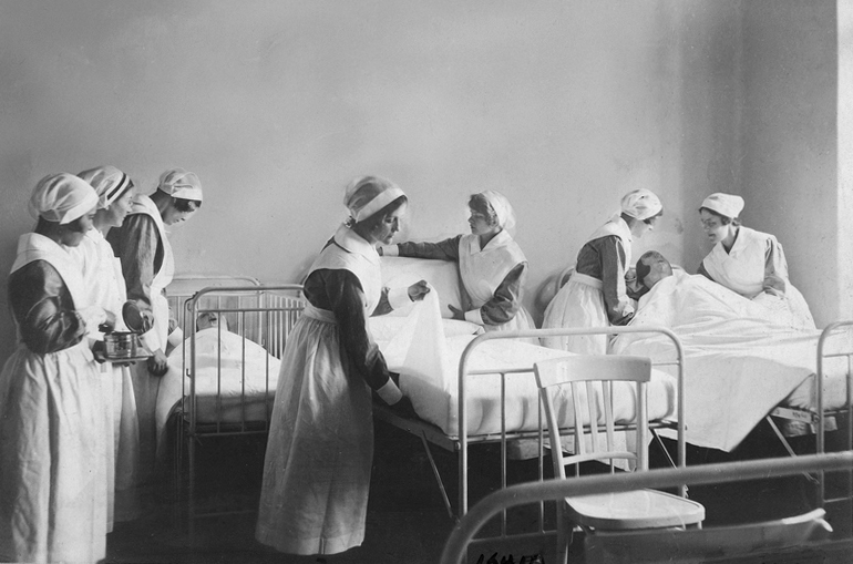While the official program in nursing education began in 1924, comprehensive consideration of the issue of nursing education began in 1918. That year an RF-sponsored conference focused specifically on the issue of public health nursing education in the United States. This meeting resulted in the formation of the Committee for Study of Public Health Nursing to survey the state of the field. The scope of the study was later expanded to include hospital nursing as well. The resulting Goldmark Report, named for the committee’s Executive Secretary, Josephine Goldmark, advocated university education for nurses and argued that public health nursing must include training in basic hospital nursing.